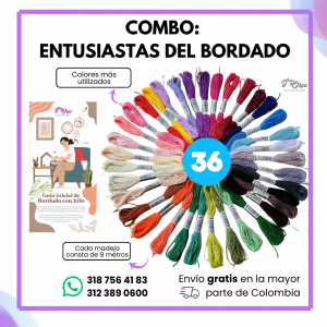 Ideal si quieres tener en un solo paquete los 50 colores más usados en Colombia 💕 Son tonos cuidadosamente seleccionados para bordar flores, hojas, fondos y detalles en todo tipo de proyectos.